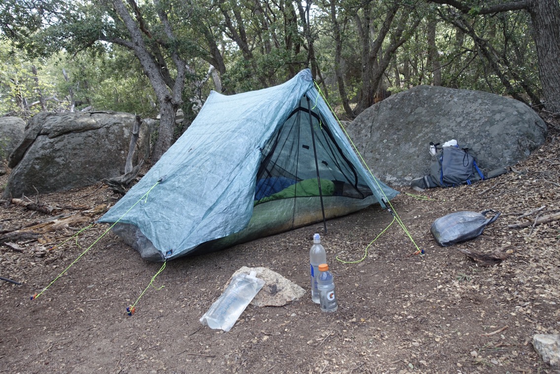 We climbed down a steep section of trail (losing all of the altitude we’d just worked so hard to gain) to get water from a piped spring. Interestingly, there was a video camera in one of the nearby logs with a sigh saying that it was trying to record foxes and raccoons. Sadly for the researchers, I expect that much of their footage is of dirty PCT hikers filling up on water. On the bright side, the water didn’t taste like sulphur (as our water report indicated it might)!