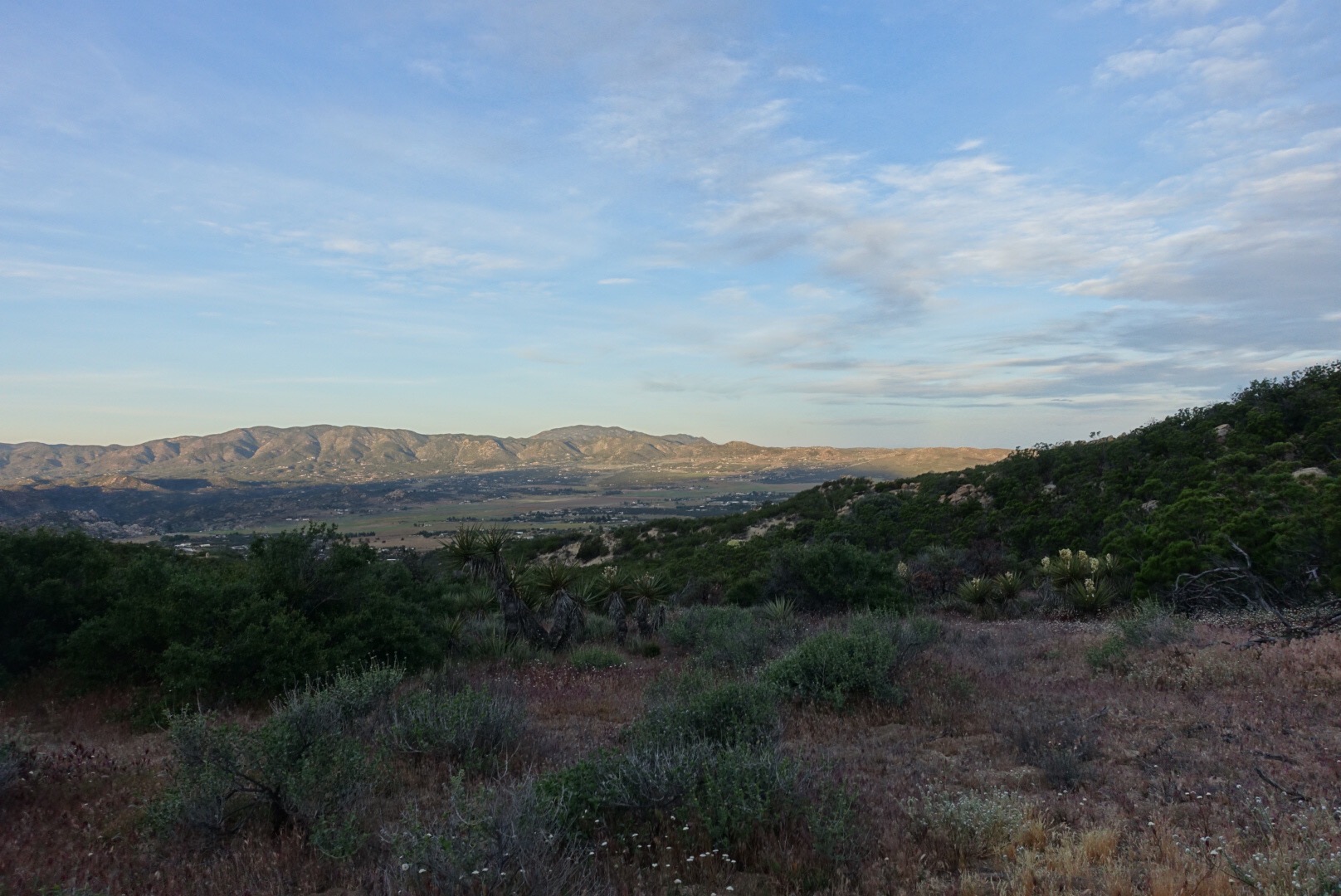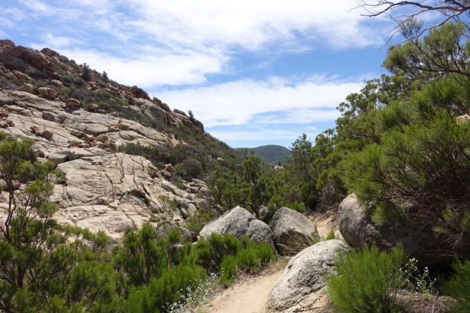 We stopped hiking early today. This has two motivations. First, the wind today was strong and constant and we were lucky enough to find what appears to be a sheltered spot. Second, we pre-booked a hotel room in Idyllwild for Friday night and at our current pace we’re set to arrive Thursday (we booked a couple weeks ago, so we had no idea). There’s no point getting to Idyllwild early, so a couple shorter days are in order. Our bodies will thank us I’m sure.