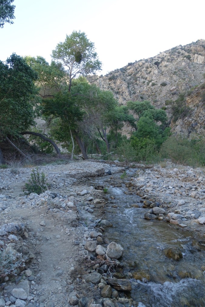 Today promised to be even hotter than yesterday, so Michael and I agreed to aim to take our siesta at mile 135.5. The spot looked like it might have shade and water — a perfect siesta combination. This morning’s walk was largely in a valley that criss-crossed a stream and enjoyed occasional shade. We even came across another rattlesnake! After having no water yesterday, today there was almost too much and I couldn’t keep my shoes dry in the numerous crossings. At one of the crossings, we basically lost the trail for a bit and had to climb up a hill to find it. Not sure what happened, but it was clear that we weren’t the only ones that found ourselves in that situation.