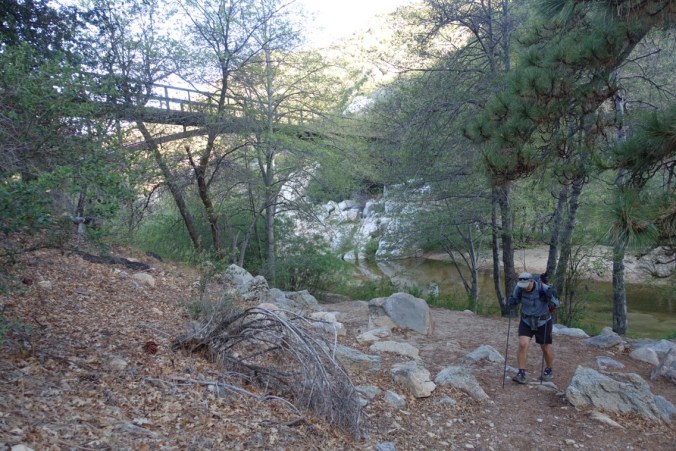 This morning’s walk was dramatic. The trail was cut into the walls of a canyon with a rushing river at the bottom. It’s weird to be checking the water report for where the next water is located when you’re staring down at it the whole time. But, alas, it was out of reach. Photos can’t do the scenery justice.