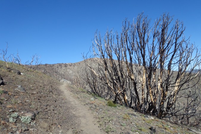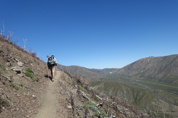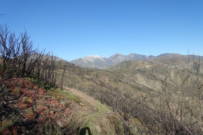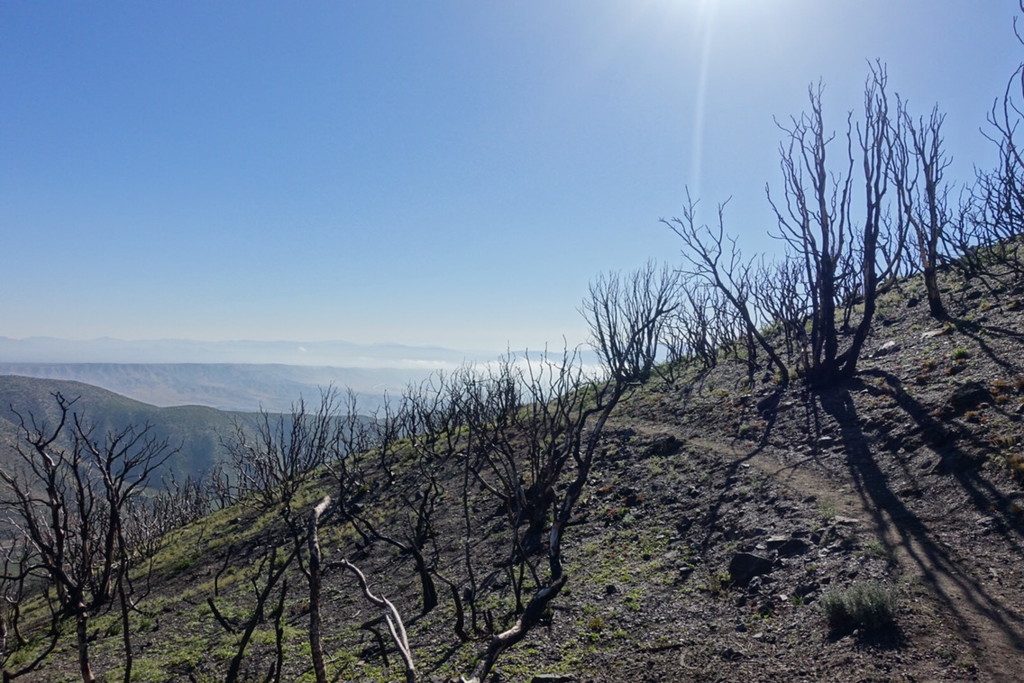 Michael wasn’t feeling 100% and struggled a bit with the climb. I was feeling strong today, so I would hike ahead and when I found a good bit of shade (of which there weren’t many), I’d stop and wait. The trail was very exposed and it quickly became hot. It didn’t help that we spent much of the morning going through a recent burn area filled with burnt, leaf-less manzanitas. Due to the limited shade spots, we found ourselves leapfrogging throughout the day with Jade and Mike.