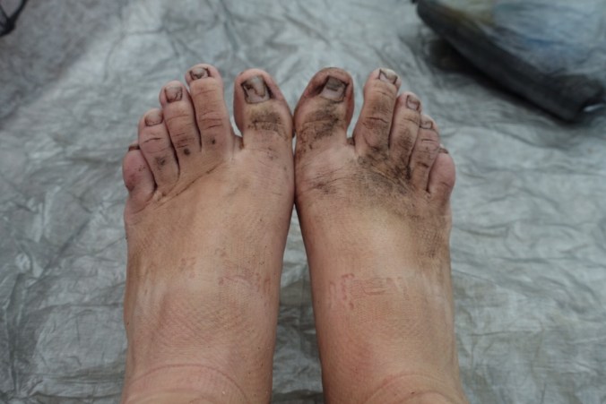 Elizabeth: after being wet half the day my feet look horrible, but are probably okay; my chafe is so bad.