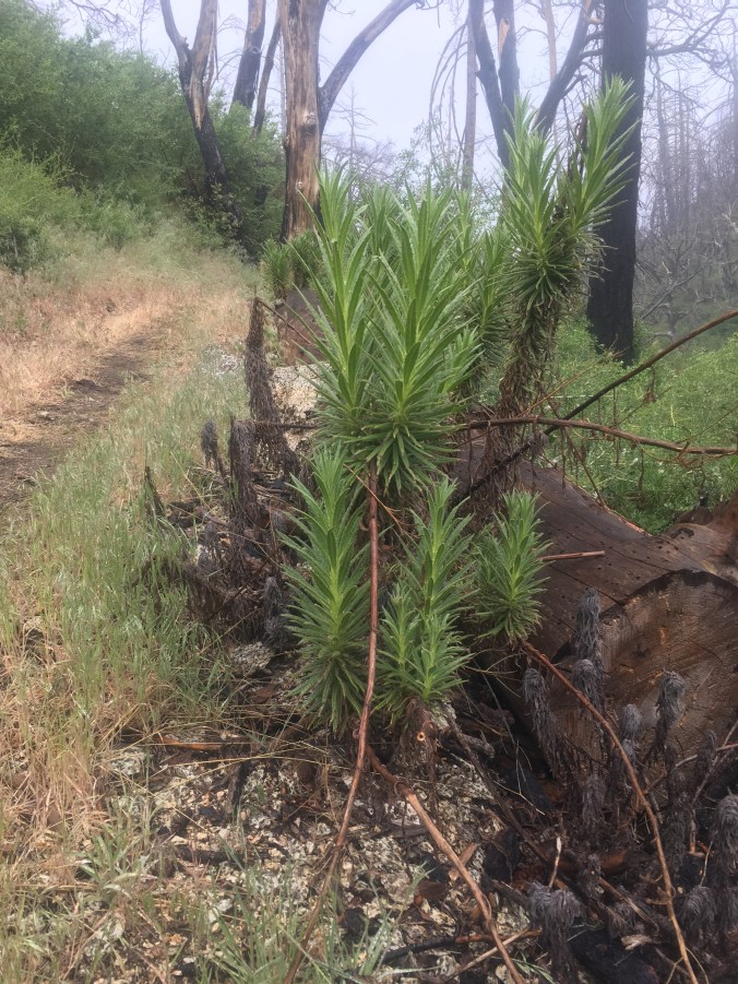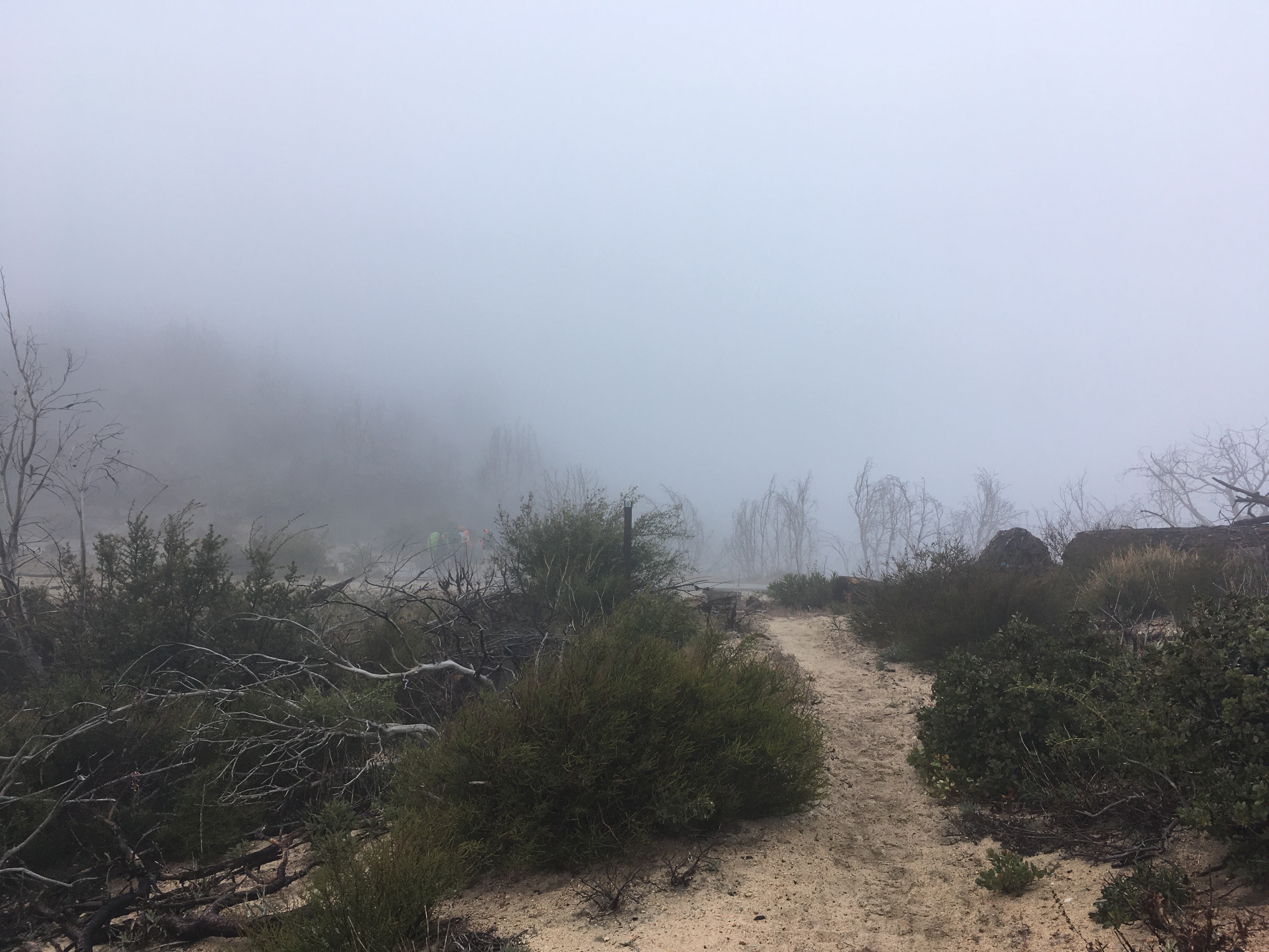 The area that we walked through was covered in a heavy brush. One of the plants present was our friend poodle dog bush (related to poison oak and with similar effects). Apparently in some years it’s been bad enough that there is a “poodle dog alternate,” which is basically a road walk around the area. Not necessary this year in my opinion, as it was easy enough to avoid the bushes if we watched carefully. Still slowed us down though.