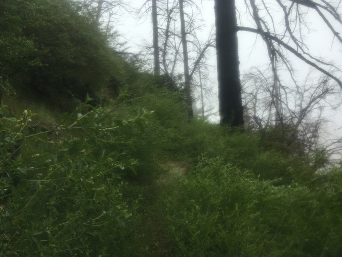 What was not so easy was getting through the normal bushes. They obstructed the trail and were often as tall (or taller) as I am. It was exhausting to push my way through and only added to how wet I was becoming in the rain. After a few miles of this I was tired and ready to stop, but that wasn’t an option. There was no where to stop and even though it eventually stopped raining it was still really cold. We needed to keep moving to stay warm.