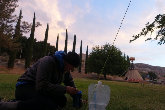 About 7 miles into our day we stopped at the North Fork Ranger Station, where the rangers maintain a water cache. It’s a good thing too, because yesterday we were so cold and tired when we got to our last water source that we didn’t study the water report to see when our next water would be. Turns out that there wasn’t another natural source before Acton! We grabbed some water and then began to descend down into Acton.