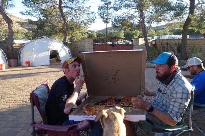 We had thought that we’d be on our own to figure out dinner tonight, but instead we were treated to pizza from other hikers who had over-ordered (either purposely or accidentally). I’ll take it!
