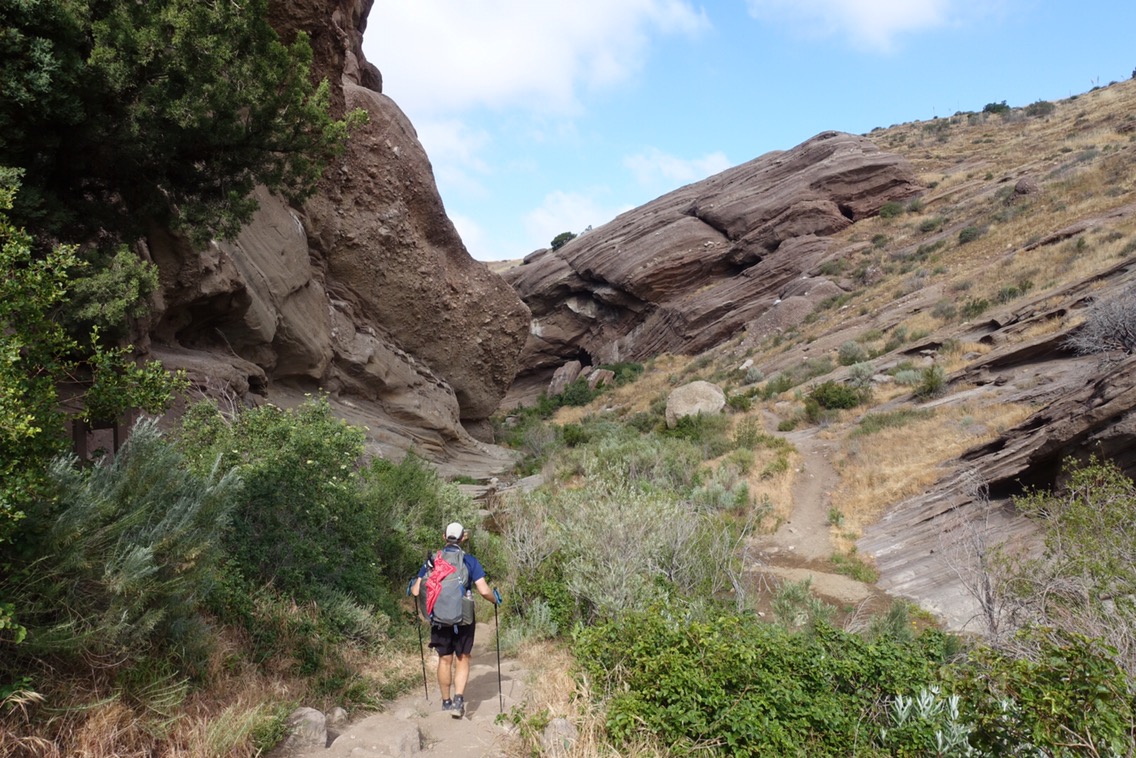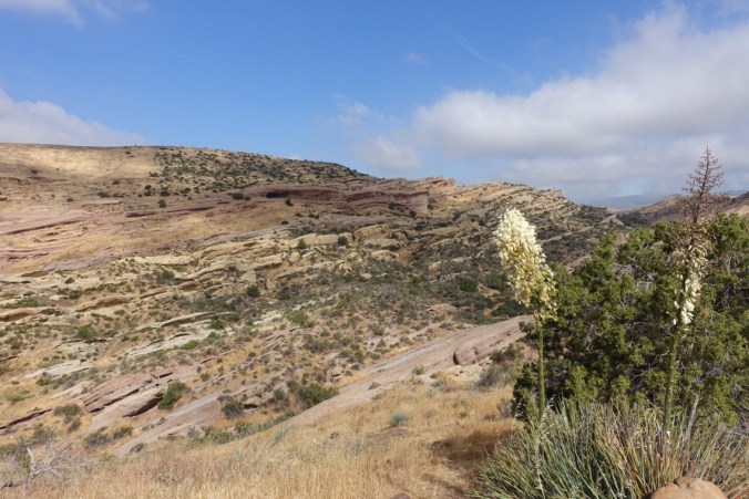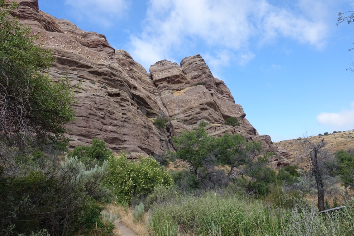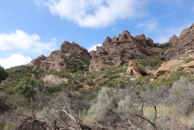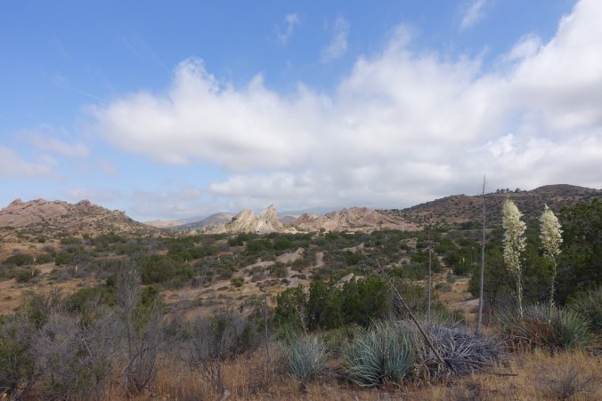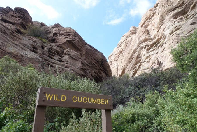 Out efforts were instantly rewarded when we entered the Vasquez Rocks County Park. It was amazing! Apparently the area has been used as a backdrop in a number of movies and TV shows, including Star Trek, for its other worldly appearance. For us, it was a nice change of scenery from the low desert brush and burned out trees that we’ve been seeing a lot of lately. We definitely took our time to admire the rock formations and informative signs identifying the native plants.