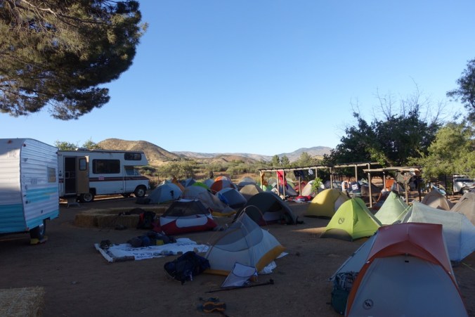 Hiker Heaven is a little over a mile from the PCT and we lucked out and were able to catch a hitch with one of the Saufley’s neighbors. When we arrived, we were given a tour of the operation by Tartan, who is volunteering here for a few weeks. It’s impressive how many hikers they are able to help out and how organized everything is. There are stations for laundry (which they do for you) and lots of loaner clothes, a computer tent, sewing and repairs tent, lots of hiker boxes, and a huge mailing center in the garage. There were also a ton of tents already set up and a could trailers/RVs where a few couples could sleep.