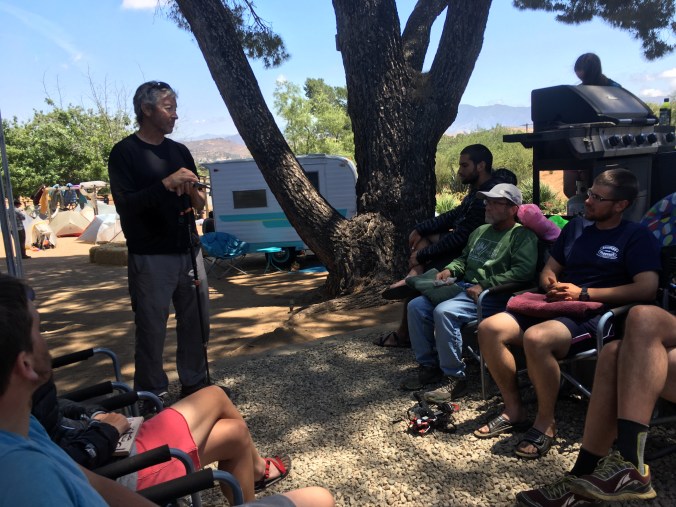 Much of the conversation at Hiker Heaven is about how to deal with the upcoming Sierra section. Late in the afternoon, a guy showed up who had recently been up in the Crabtree Meadows/Forrester Pass area. He was treated to a fairly sizable audience that gave him their rapt attention. Let the fear mongering begin.