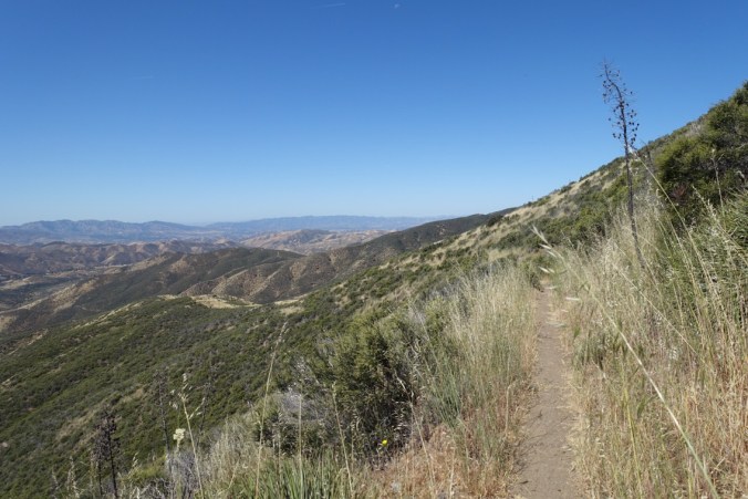 We didn’t see too many people this afternoon, which was surprising since there were so many people at Hiker Heaven last night and one of the trail registers indicated that a lot of people were in front of us today. We finally ran into a group of hikers at the memorial bench, including Mike and Kimi from Alaska (last seen on day 24 at El Cajon Pass) and the guys from the 24x24x24 challenge (only one going strong at that point). With 6 miles left to go it was already 3:45 — we needed to hurry!