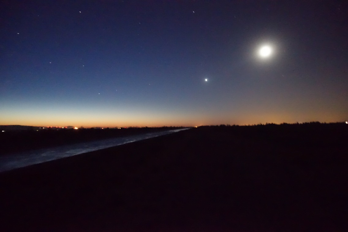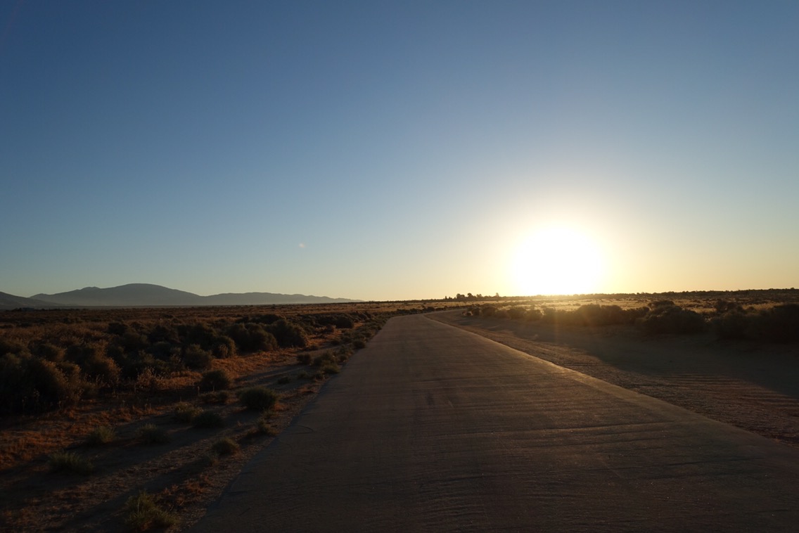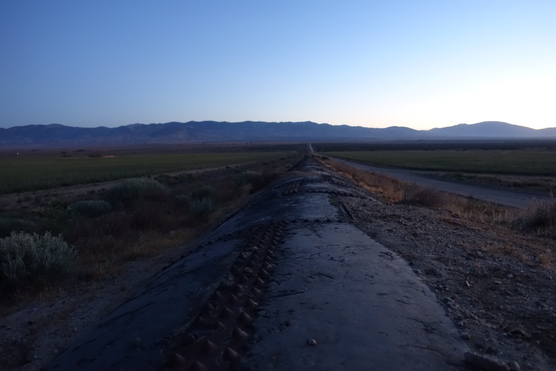 We soon found ourselves walking along an open canal. Or at least that’s what I thought it was — it was still pitch dark. A couple miles later, we crossed a bridge, turned, and had officially hit the LA aqueduct. This portion was a large metal pipe that barely stuck up above the ground. I walked directly on it for a few moments before deciding that it wasn’t worth the effort (you try walking on a rounded pipe) and headed down to the dirt road that paralleled the pipe.