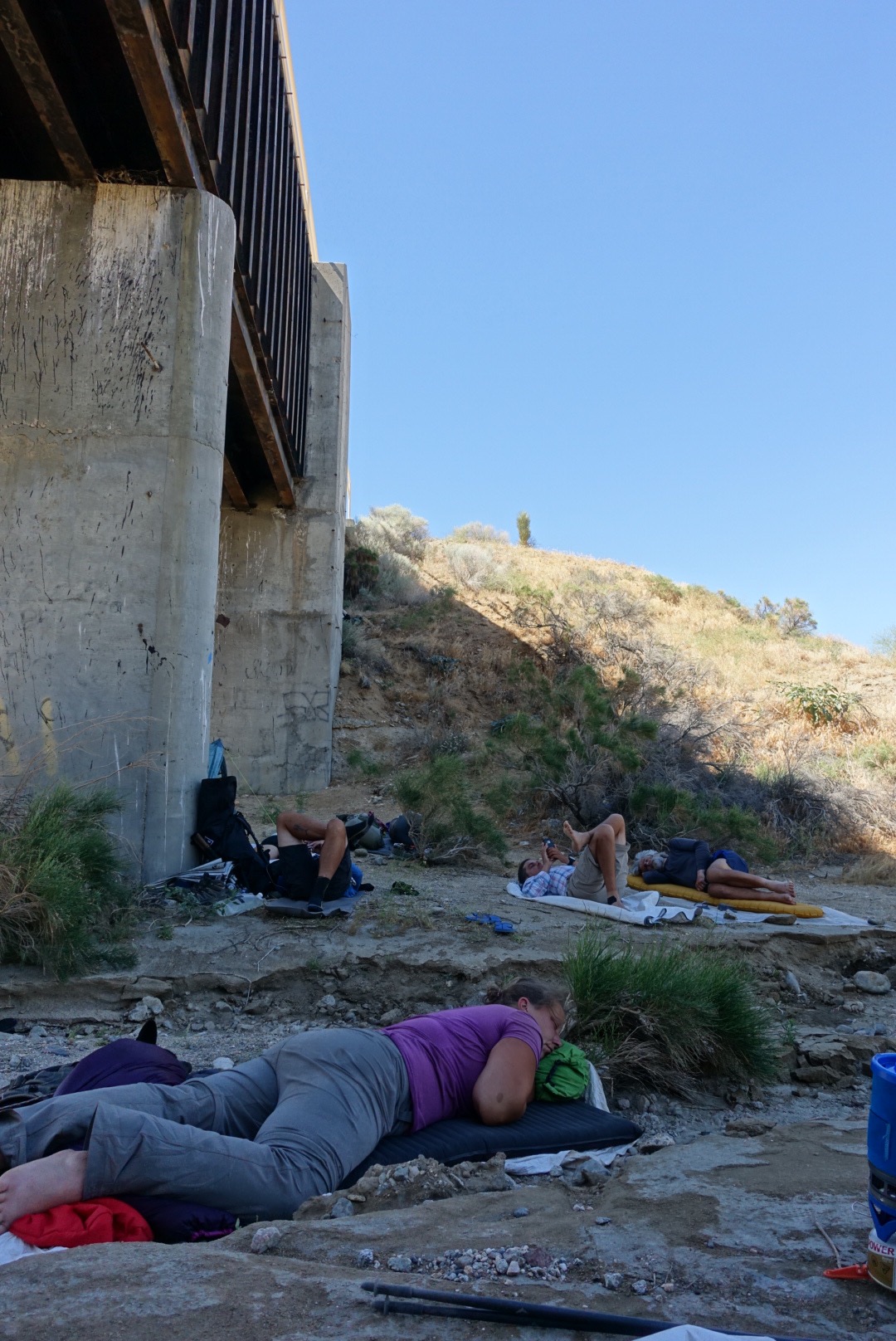 Mid-day siestas are always kind of boring. We hid under that bridge until about 5pm, moving our tyvek ground sheet a couple times as the shade moved. Everyone was pretty chill and a few brave souls even decided to continue on mid-day. Crazy. It was so hot. I tried to nap, but to no avail. That’s not really one of my talents.