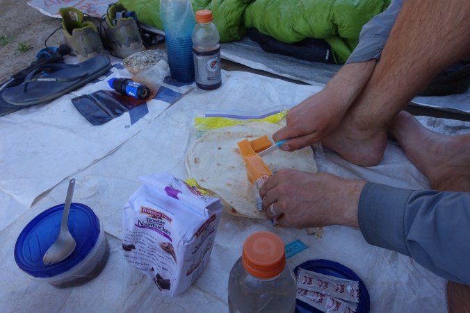 We cooked both our lunch and dinner, taking advantage of the fact that there’s actually a faucet that connects to the aqueduct that was running with water near the bridge. Yay! Lunch even included real cheese in our burritos followed by cookies thanks to Alyse’s care package. Thank you again!!