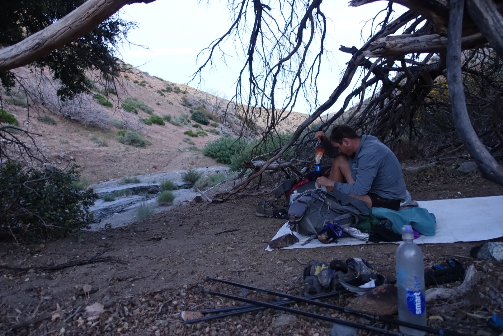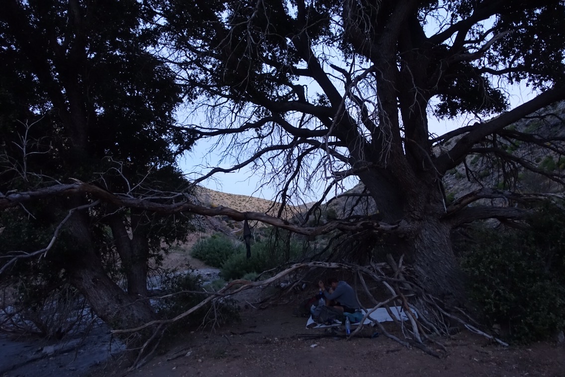 I found a great spot downstream a bit from the trail under a large tree. I’m hoping that being away from the trail will mean that we’re less likely to be woken by people night hiking his section tonight. That said, the wind is pretty strong so we’ve opted to cowboy camp tonight. Hopefully it does down a bit like it did last night!