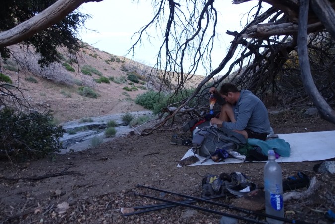 Finally, having spent the day relaxing in the shade and trying to stay hydrated, we were ready to leave by about 5pm. We had 7 miles to go before the next water source. It would also be our last water source before Tehachapi– ruining our plan to do a short day tomorrow so that we could get into Tehachapi early the next morning.
