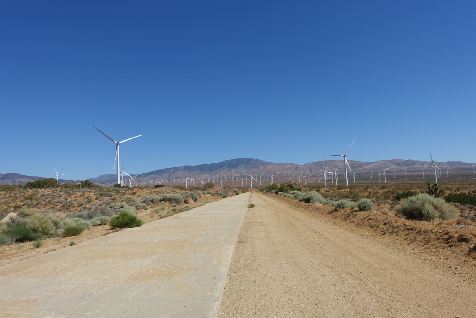 After a couple miles walking along the pipe, the “trail” turns to walk over a section of the aqueduct that is completely covered by a cement road. The cement was both easier to walk on and was already hot and bothering my sore feet. I opted to primarily stay on the dirt tract right next to the aqueduct.