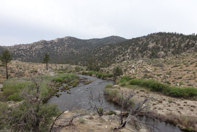 We are also suddenly surrounded by water. Our last several miles paralleled the Kern River. The water looks powerful and brown with silt. I know that we will have the luxury of a bridge crossing when we finally cross the Kern, and I’m glad. It looks like it would be a challenging start to our upcoming river crossings in the Sierra.