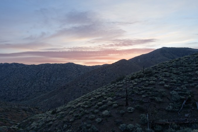We were up early and ready to continue down the mountain.  The race to get to Kennedy Meadows was on!  We were in yet another burn area, so we had clear views of the mountains flanking the valley ahead.  At the bottom of the mountain, we stopped quickly to pump water and then it was time to enjoy the meadow.