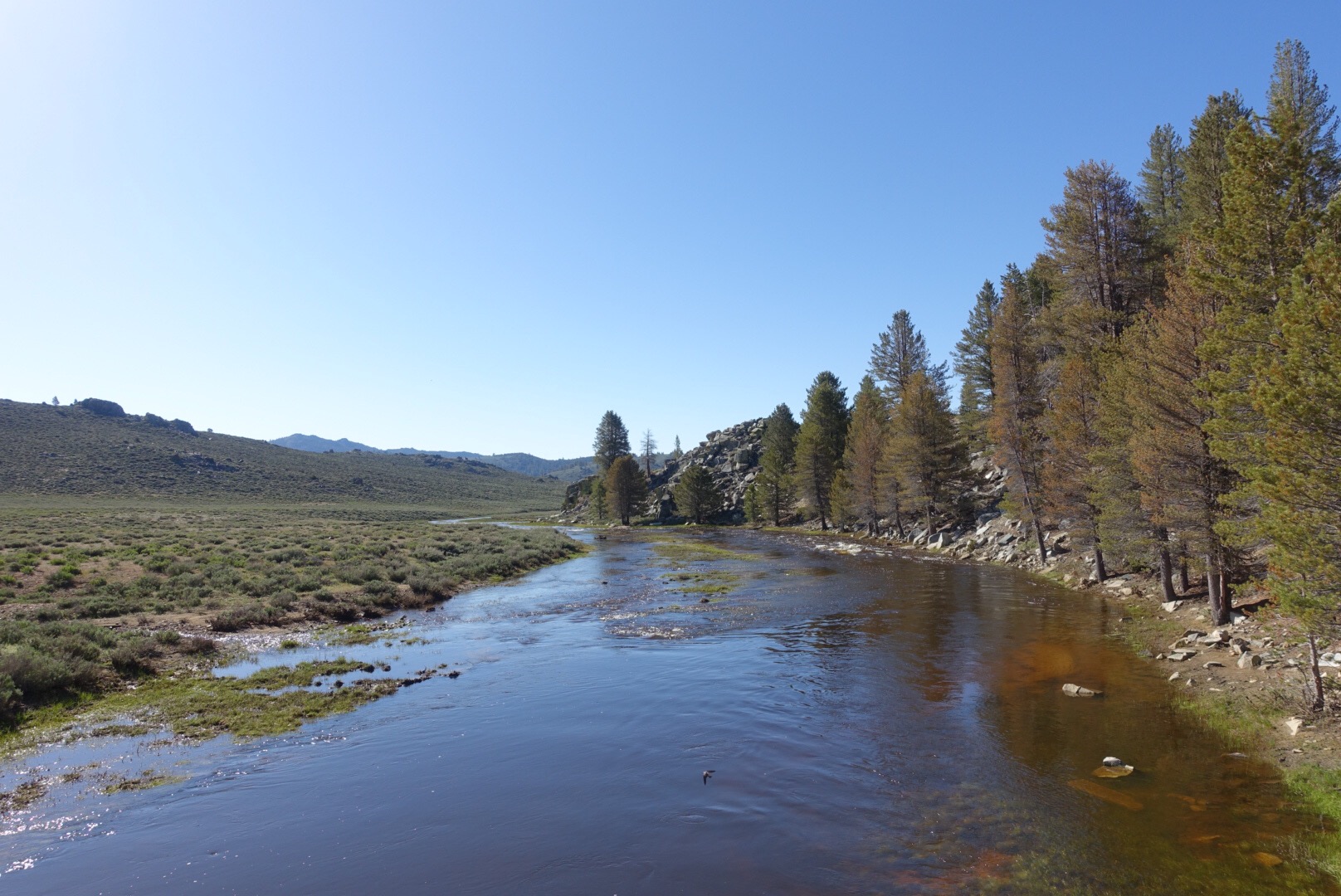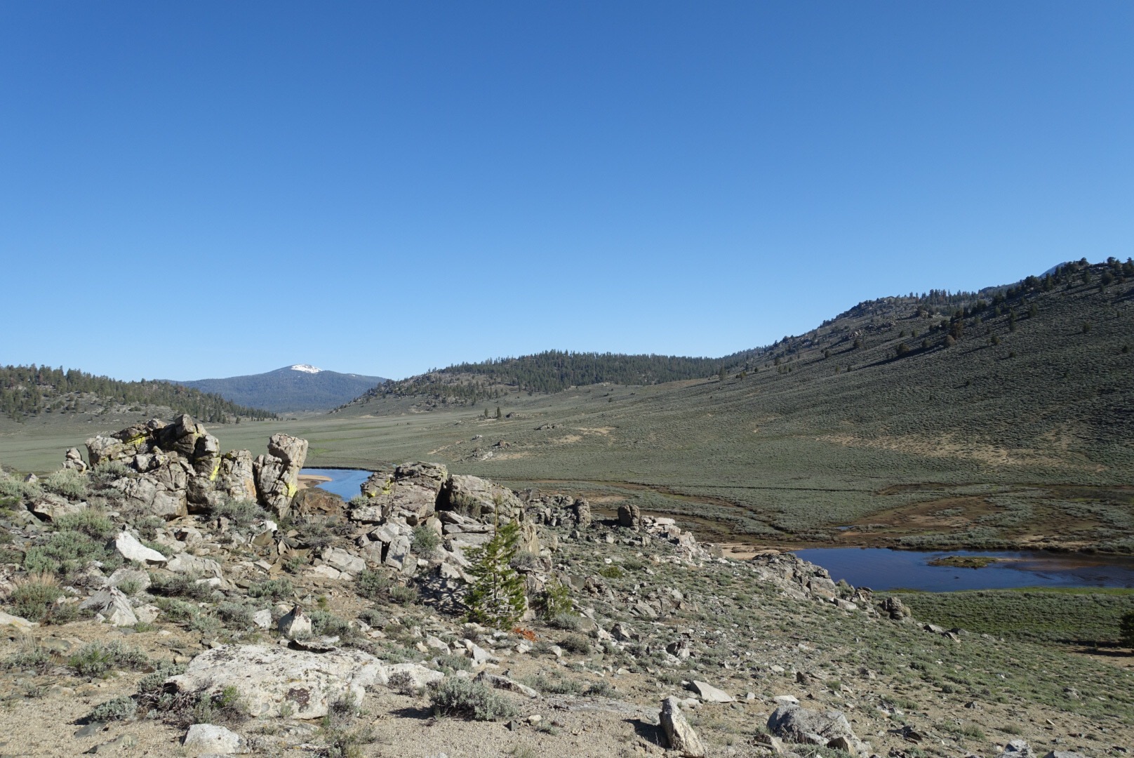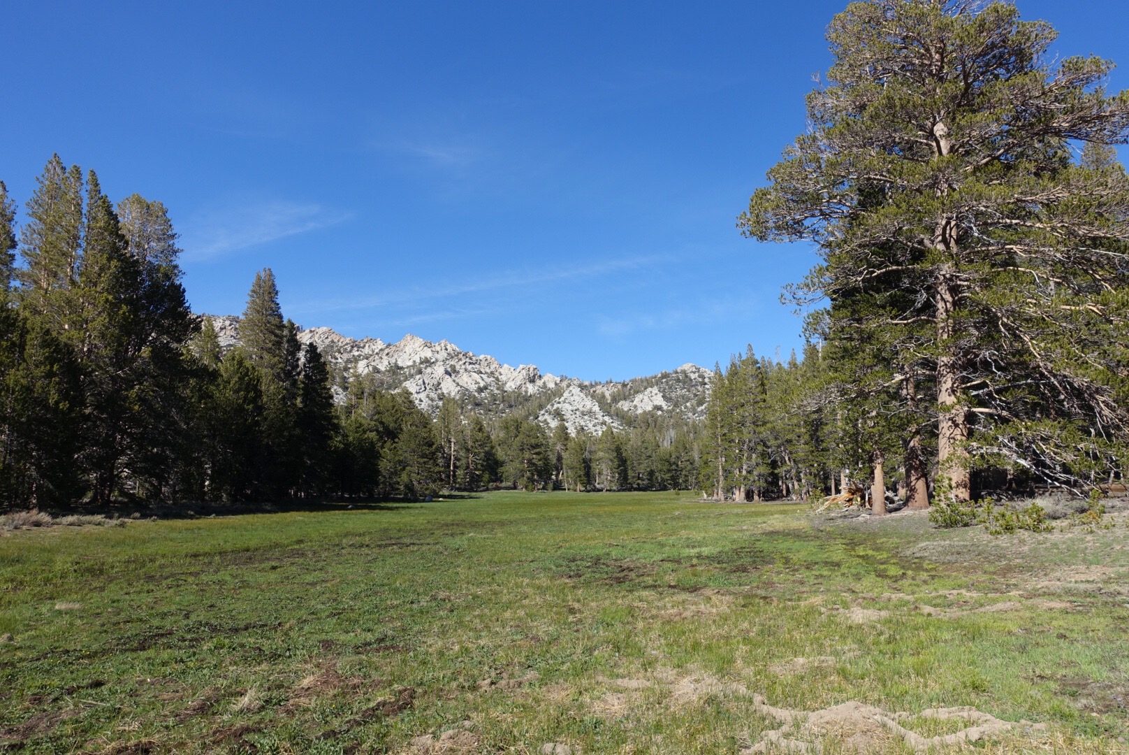 When we were finally free of the snow and down the mountain we were treated to the sight of Gomez Meadow, which was breathtaking. This is why I love hiking in the Sierras, around every turn is another view to die for! And we practically had it to ourselves. Other than the hiker that I leap frogged a couple times with in the morning, we saw no one until late afternoon when we ran across a couple southbound hikers. What a big change from Southern California!