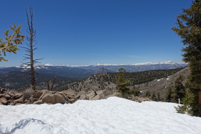 As we approached the top of the pass, we started to see more patches of snow. We stopped for lunch in a dry spot in the middle of a bunch of these patches and figured that this was probably as bad as it would get today. So wrong.