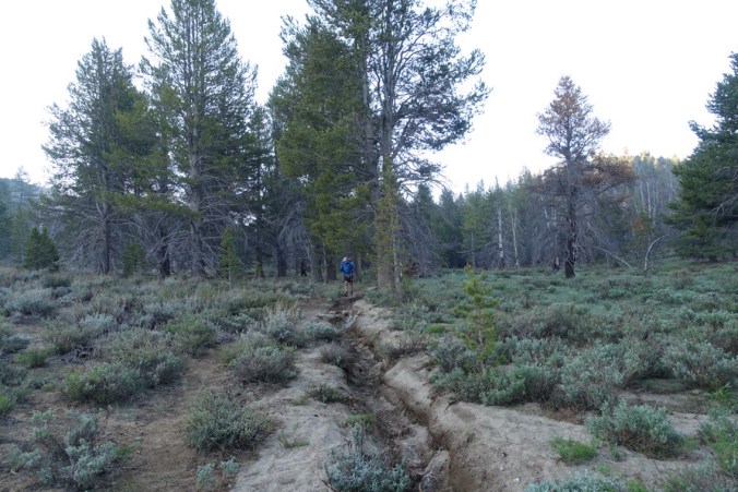 Throughout the morning we passed several little creeks, many of which ran along (and into) the trail and weren’t listed in any water source. We sadly also passed through yet another burn zone. I guess we didn’t leave those behind entirely! We passed a few occupied tent sites during our first few miles — I guess people aren’t adopting early rising routines yet since we haven’t hit snow yet.