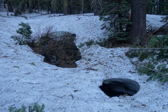 We opted to take advantage of the semi-clear trail and make our way a couple miles further before stopping to camp. I’m beat. I’m exhausted from a tough day in the snow and frustrated that we’re still having tough days in the snow. I’m concerned that we have yet to go 30 miles on this segment in three days and hoping that we’ll have enough food to get us to Belden. We studied the map and it looks like we should have a dry section coming up. If we can’t make up the miles during that section, we might just have to go into town early at Bucks Lake. We just need to catch a break.
