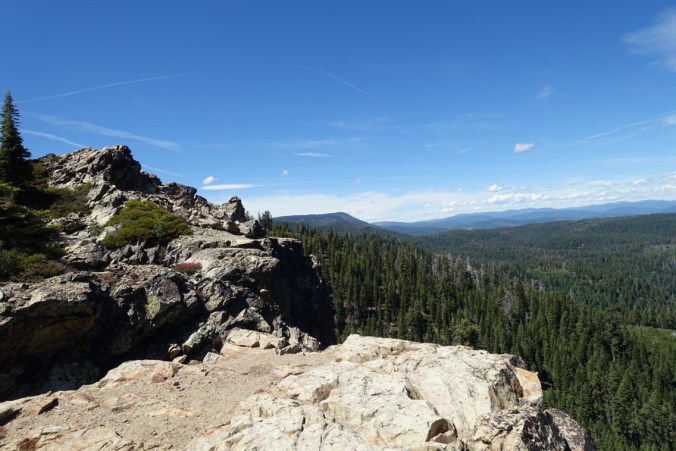 After a few miles our climb transitioned to a fairly exposed ridge walk that afforded us views of the surrounding mountains and Mt. Lassen in the distance. One of the most exciting parts of the view was that, with the exception of Mt. Lassen, most of the mountains were green instead of white!! We actually had to walk over a couple of minor patches of snow as the trail approached 5900 feet, but only a few steps. It was almost a snow-free day!!