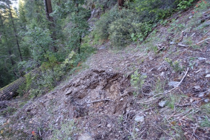 Piece of trail washed out after a huge tree fell over. Easy scramble around…