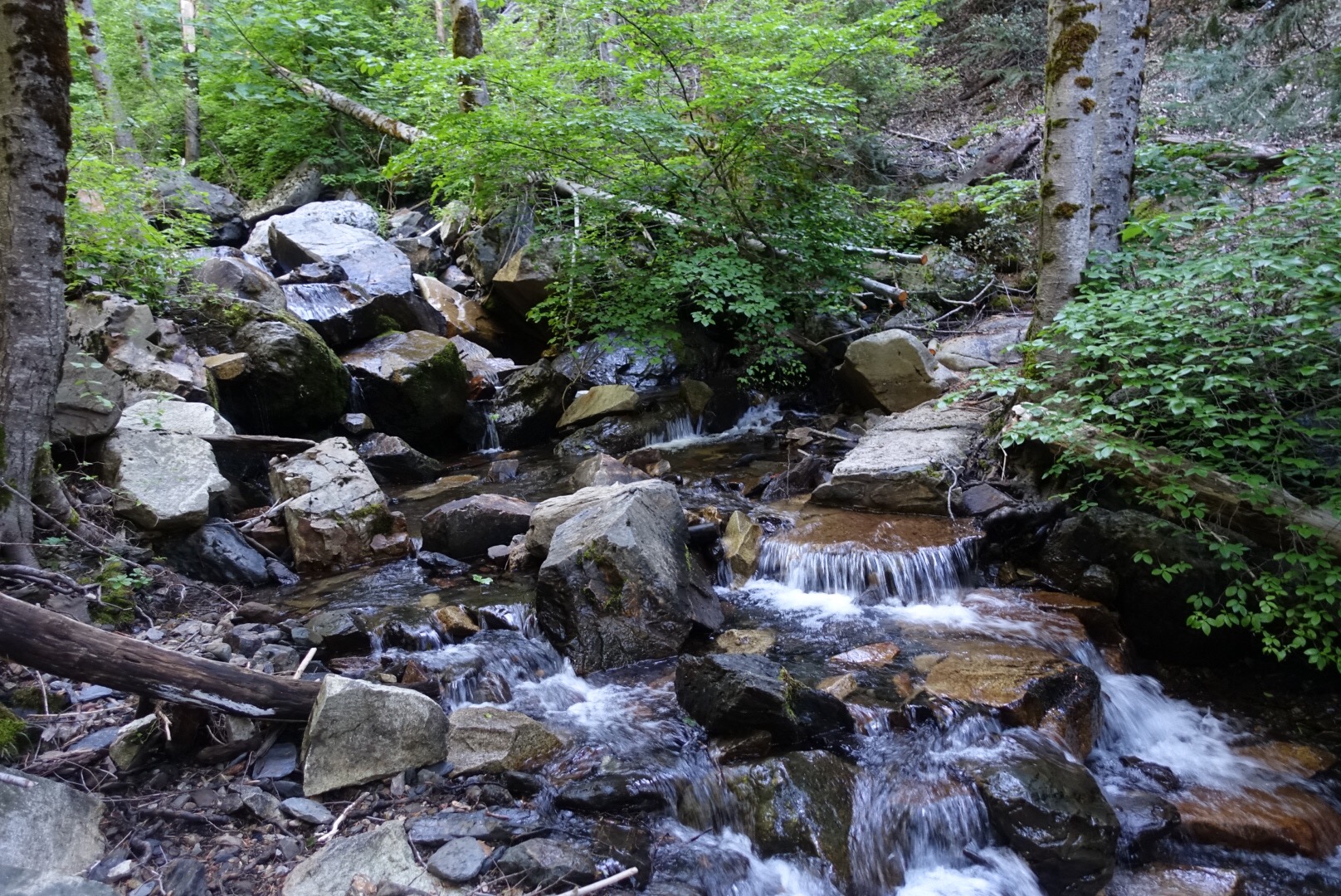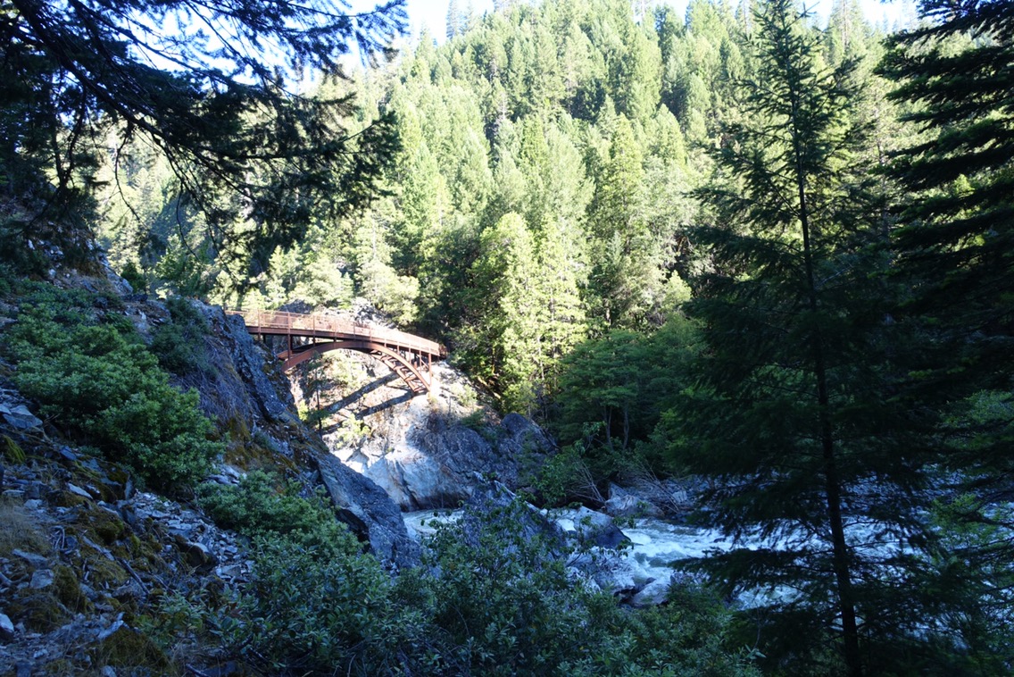 The middle fork of the Feather River was raging. But unlike in the Sierra, I didn’t have to concern myself with the power of its flowing waters. I took the bridge across instead! I couldn’t help but look up and down as I crossed though to see where the water below might be the calmest for crossing 😉 We actually had a bunch of creek crossings today. A few had bridges, but a bunch of the “seasonal streams” were flowing pretty well and we found ourselves doing a lot of rock hopping.