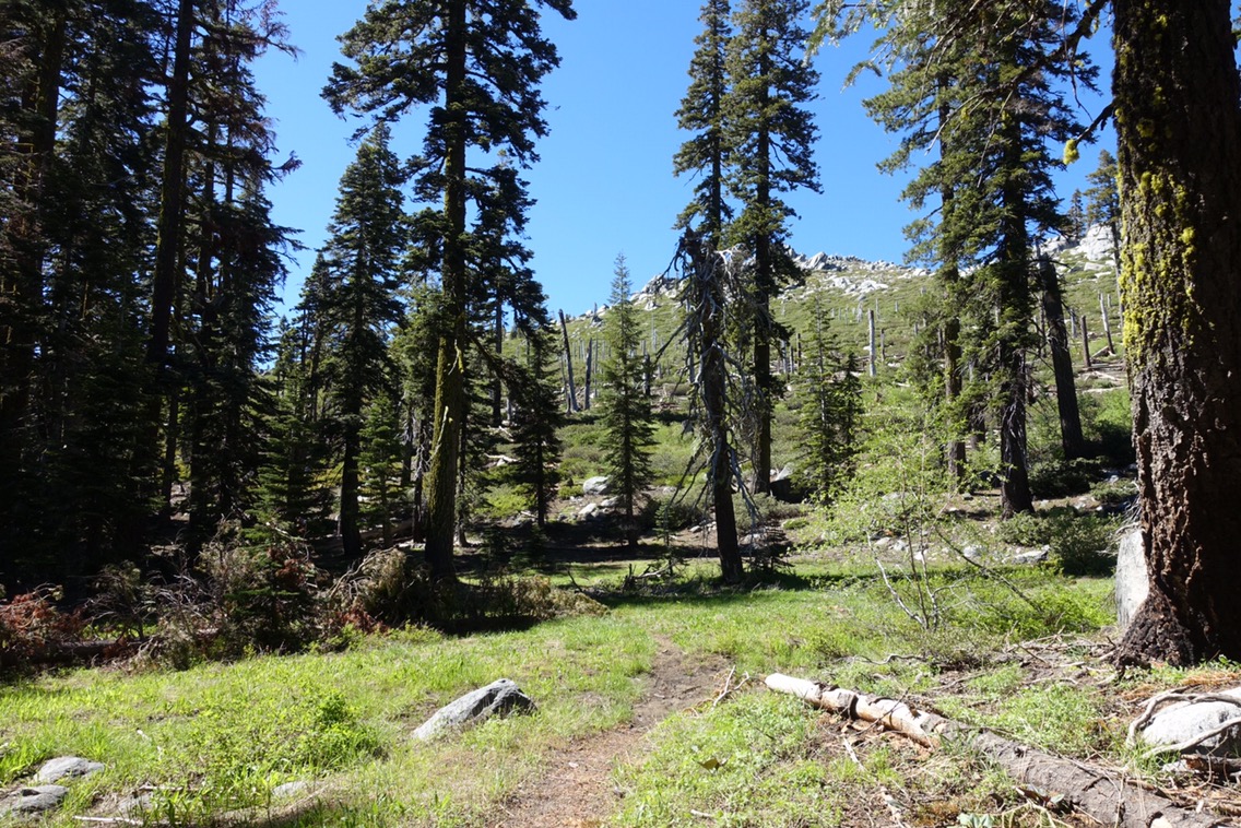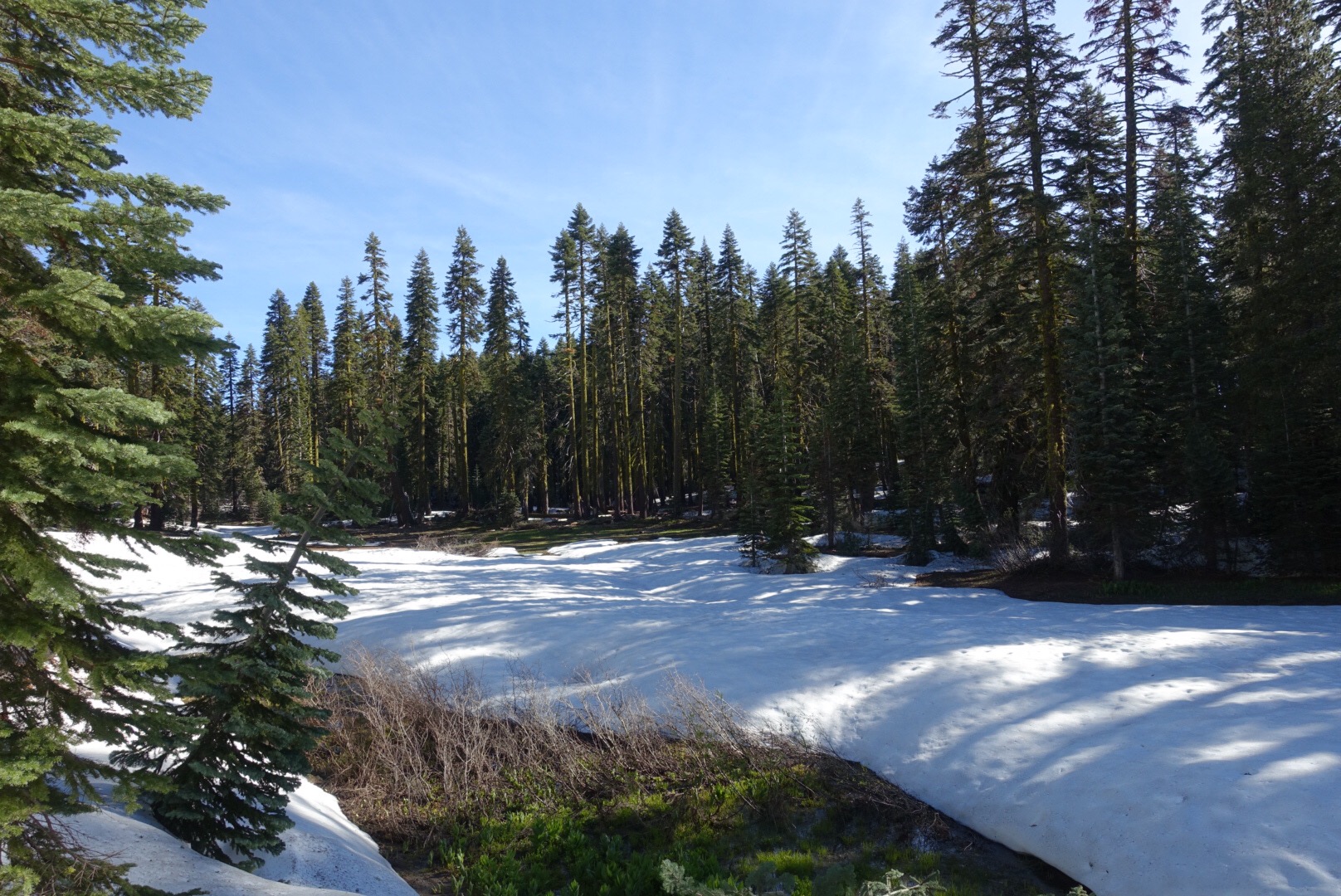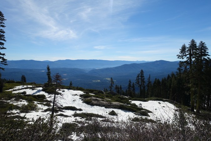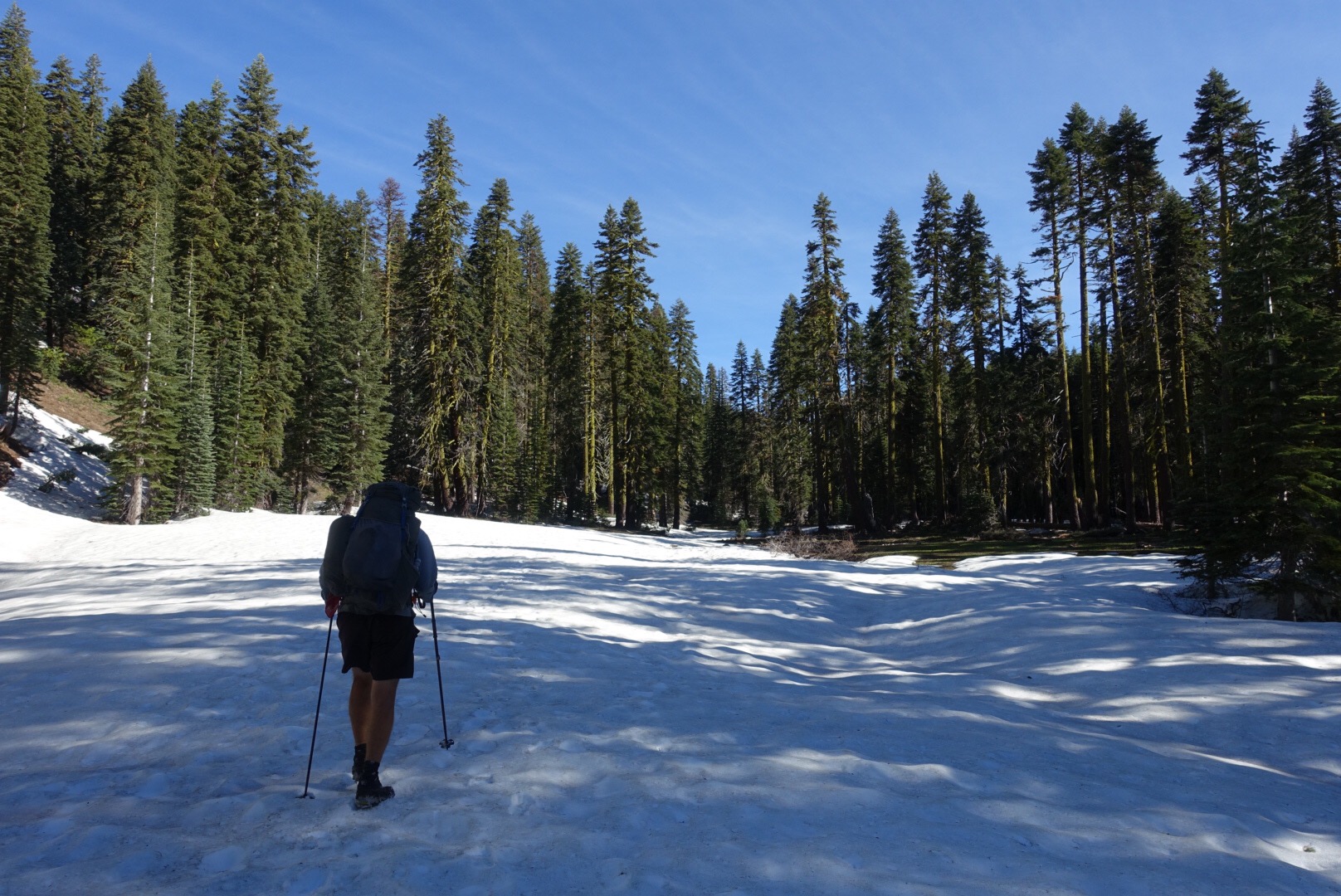 This morning started out with a few miles of gentle walking before we started to climb our back up into the snow. Surprisingly, the snow today started well above the 6000 foot line. We were able to enjoy dirt switchbacks that were likely covered in snow a few weeks ago. Now, the trail was just covered in lots of little streams going every which way.