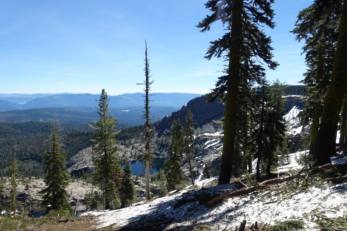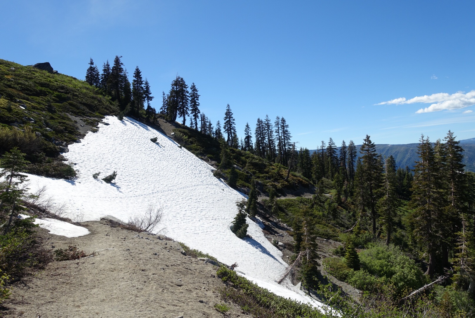 We passed some small lakes and then walked on an exposed piece of trail with great views. As I turned the corner I saw another snowy traverse. At this point, I had already committed to going into town. It was 4:30 and we had about 5.5 miles to go. We could make it by dinner!