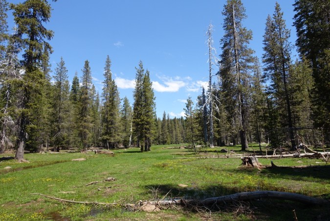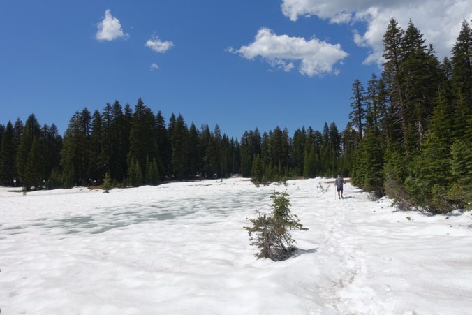 In the afternoon we hit some more snow and needed gps from about mile 1304 to 1306, but it wasn’t too bad. We didn’t even need to put on our spikes, it was nice and level (and a little slushy). This afternoon was hot again. I’m sure that this snow is going to be melting really quickly — and I hope that the snow in front of us is melting quickly as well!