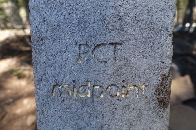 A few miles later we stumbled upon the official halfway marker of the PCT! Admittedly a little less exciting when you know you have to come back to make up 400 of those 1325 miles, but still worth the photo opp. I’ll have to keep track of when we reach 1325 miles total and we’ll do our own celebration then.