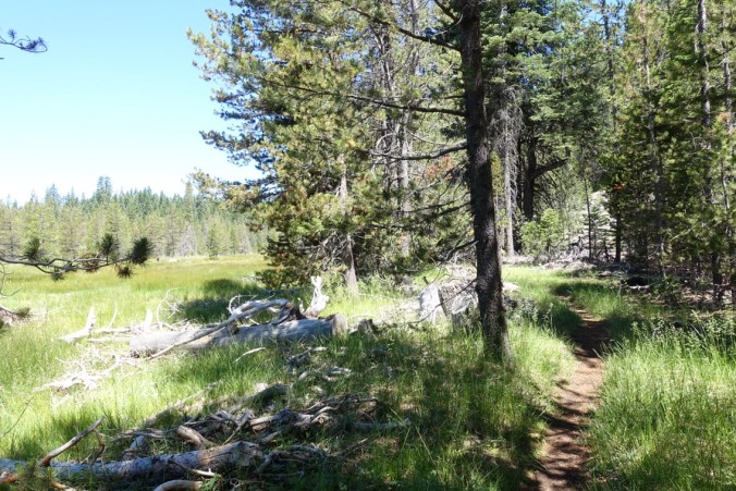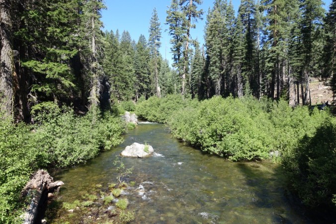 The trail crossed the north fork of the Feather River and we ran into some unfamiliar hikers — by this point in the day I’d already seen more hikers than I did between Sierra City and Belden (maybe to Chester!). What a change a week makes and a new section makes. It sounds like a lot of people skipped north to Chester. Those that skipped from Kennedy Meadows or Lone Pine have barely seen any snow– such a big difference from our last few weeks!