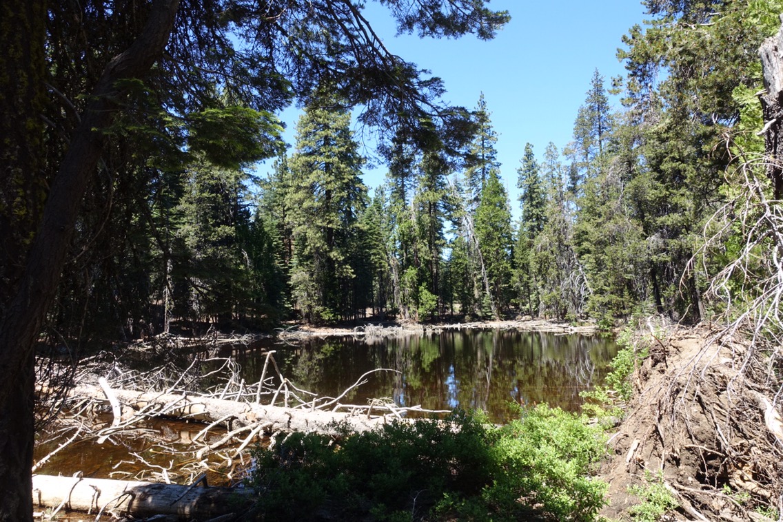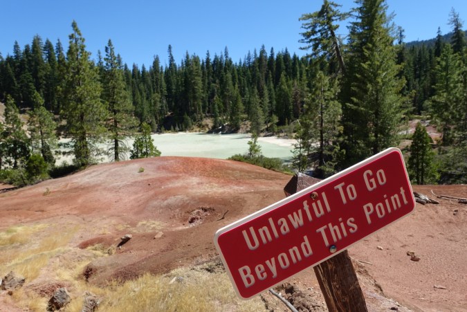We stopped to eat lunch by a small pond and then continued into Lassen National Park. The trail only crosses through about 19 miles in Lassen National Park and doesn’t approach many of the star attractions. We did pass by boiling pond though, which was a beautiful shade of iceberg blue.