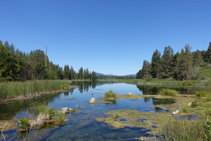 A couple miles later and we were at our first natural water source since we actually walked by Hat Creek over a day ago (yesterday’s sources were a faucet and a water tank)! We stopped at a little creek that fed Crystal Lake and then walked along the lake itself. It’s nice to be near water again!