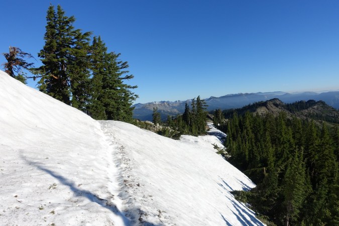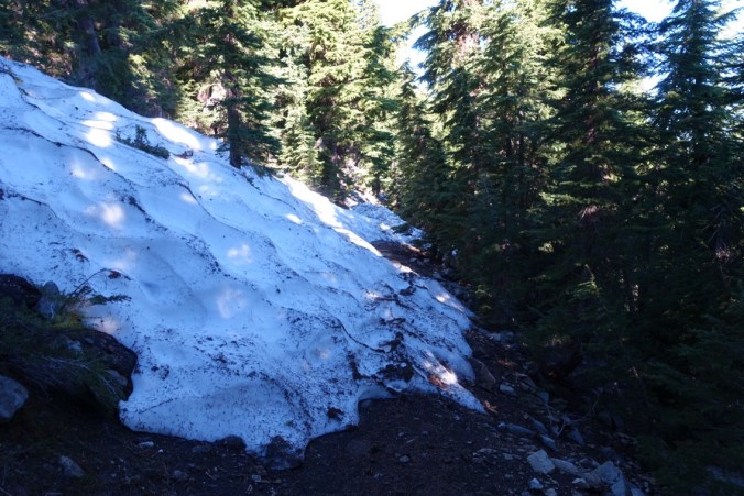 After a couple miles of incline and a bit of descent we actually ran into some more snow! But after a couple mild traverses it was gone. It didn’t even last long enough to pull out the microspikes I’ve been carrying along!
