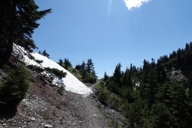 This morning started out with the big climb that we began yesterday. While yesterday’s segment had fairly decent tree-cover, this morning’s portion definitely lived up to its reputation for being exposed. It’s yet another burn zone. Luckily, we managed to stay in the shade for much of the morning because we remained within the mountain’s shadow.