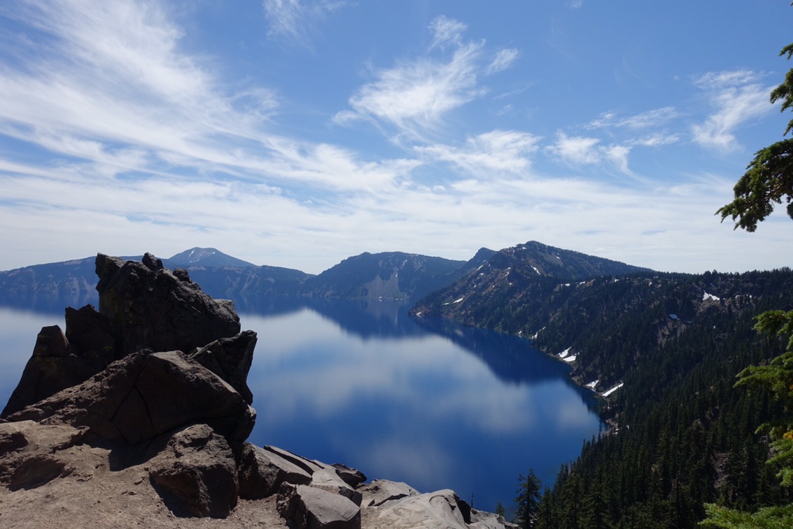 The lake itself was beautiful. A deep shade of blue with only the smallest disturbance of the water’s glassy surface. We’ve both previously visited Crater Lake, so this wasn’t a first for us, although it was the first time we had to walk to get to the park!