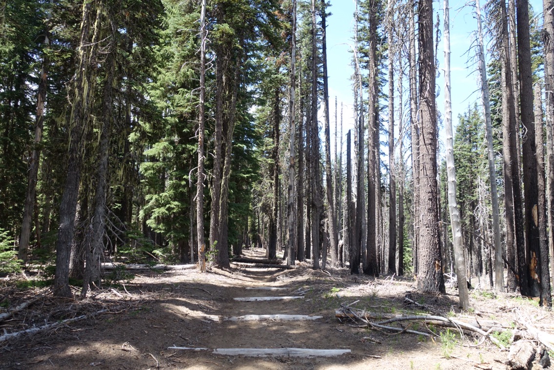 Seven in the morning is not the ideal time to hitch out of Crater Lake park and back to the PCT, so we walked the mile back along the road before finally joining back up with the PCT. We were immediately assaulted by a swarm of mosquitoes that seemed impervious to our bug spray. I resolved to switch out of my short sleeved shirt to a long sleeved one as soon as we got to the rim (where I could change in peace inside away from the swarming bloodsuckers).