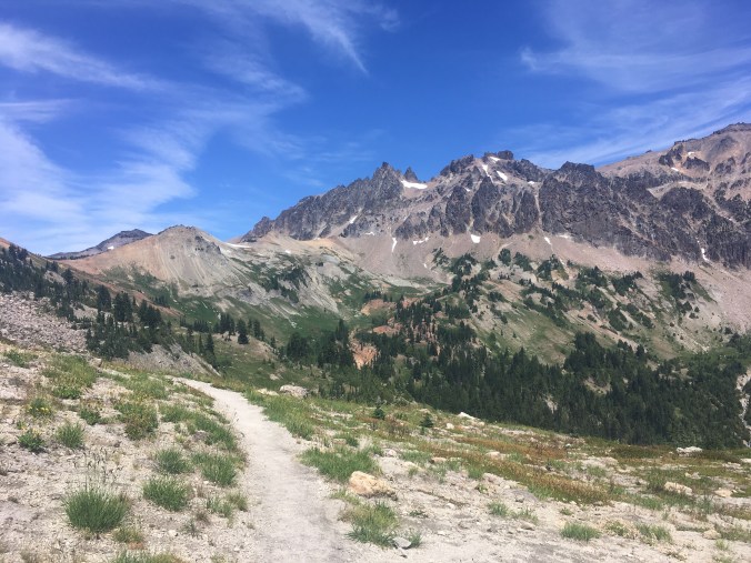 This section of the trail was popular with weekend backpackers (deservedly so) and we noticed that prime camping spots were occupied as early as noon! Unfortunately (or fortunately?), we had to keep moving. I stopped to chat for a bit with a ranger. She didn’t check my PCT permit (hasn’t been checked yet!), but did remind us that we still needed to fill out the self-registration permits as we enter each park in Washington since they are used for search and rescue purposes.