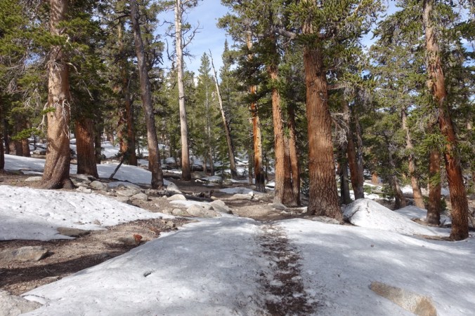 We’d heard that the snow started at the top of the climb (mile 735). There were a few patches, but nothing major. We did our best to take advantage of snow-free trail to make up yesterday’s miles during the descent.