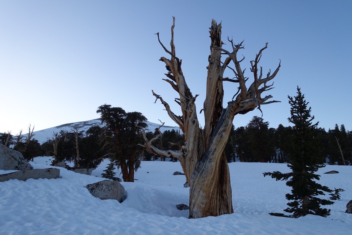 We started the day with a big, waterless climb. The rock formations in this area are intriguing and foreign looking. At every turn there was a new outcropping, making the climb enjoyable. There was surprisingly no snow on the way up, but I guess that’s why it was waterless. I overpacked water and barely touched my bottles until I was near the top. Near the top of the climb, we had a few of the normally dry, but currently wet, Owens Valley.