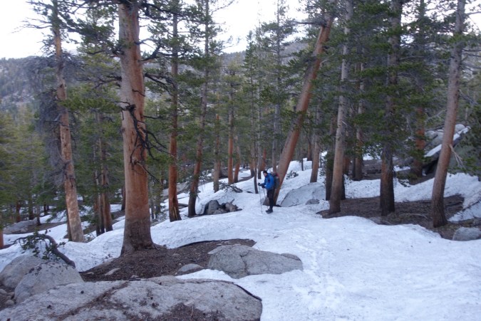 We’d heard that the snow started at the top of the climb (mile 735). There were a few patches, but nothing major. We did our best to take advantage of snow-free trail to make up yesterday’s miles during the descent.